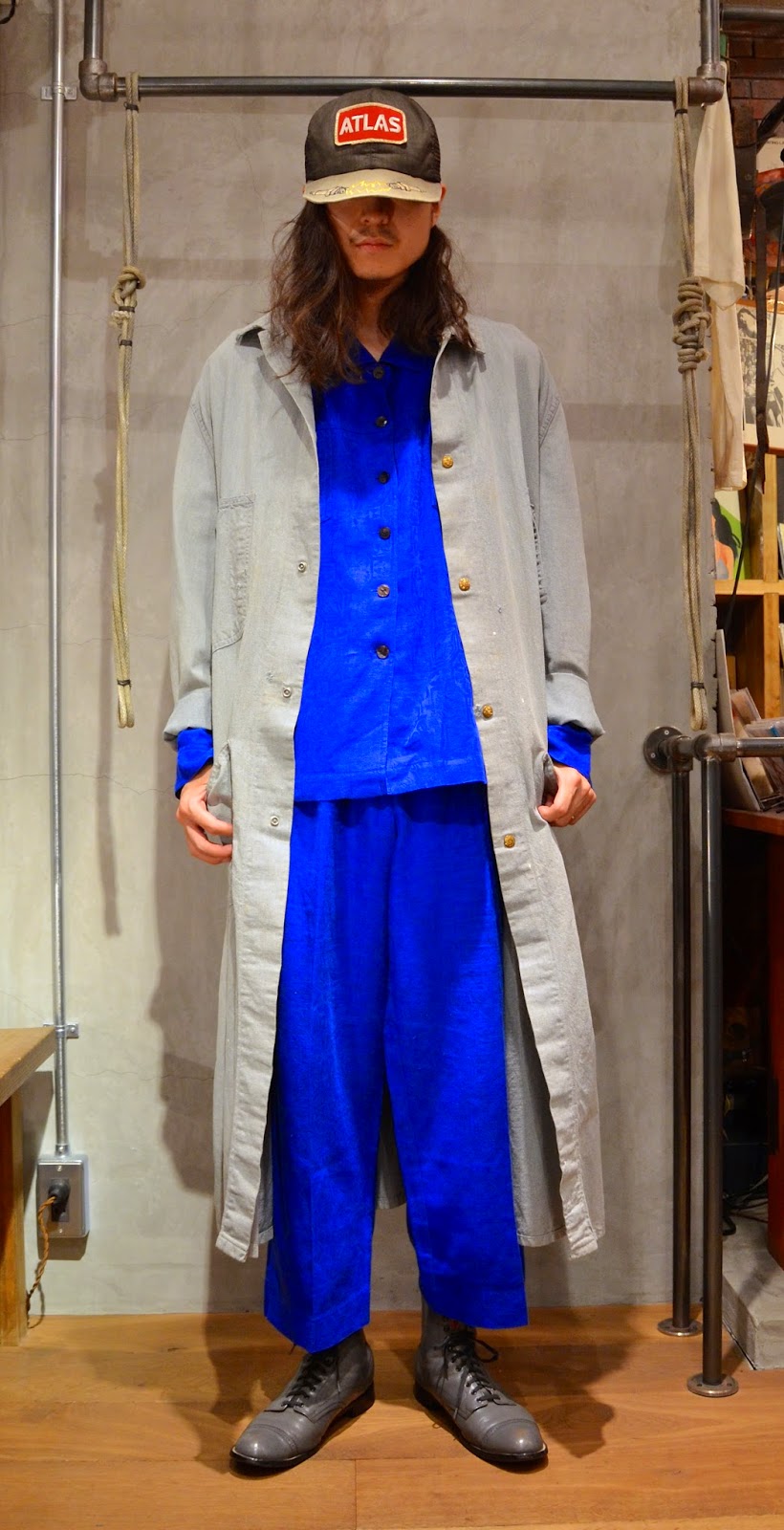 60'sのヴィンテージショップコートをさらりと羽織り、